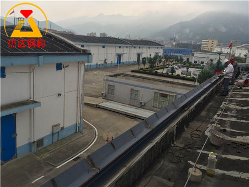 此外,H鋼與天溝上的預埋螺栓焊接節點為結構安裝提供了便捷的固定點,有效保障屋頂結構的整體結合。
