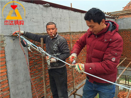 圖中展示了鋼絲繩拉緊裝置的現(xiàn)場應用,反映出施工環(huán)節(jié)的技術細節(jié)和操作規(guī)范,有助于提升整體工程質量。