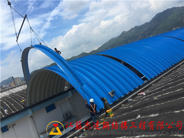 1.金屬拱形波紋鋼屋蓋u形和v形兩種截面形式各自有著獨到的特點和適用范圍,彼此間沒有完全取代和被取代的優勢和可能,我們不能簡單過分鼓吹一方,否定另一方;具體截面形式的選用要根據工程的具體工況、工藝要求和使用功能嚴格;