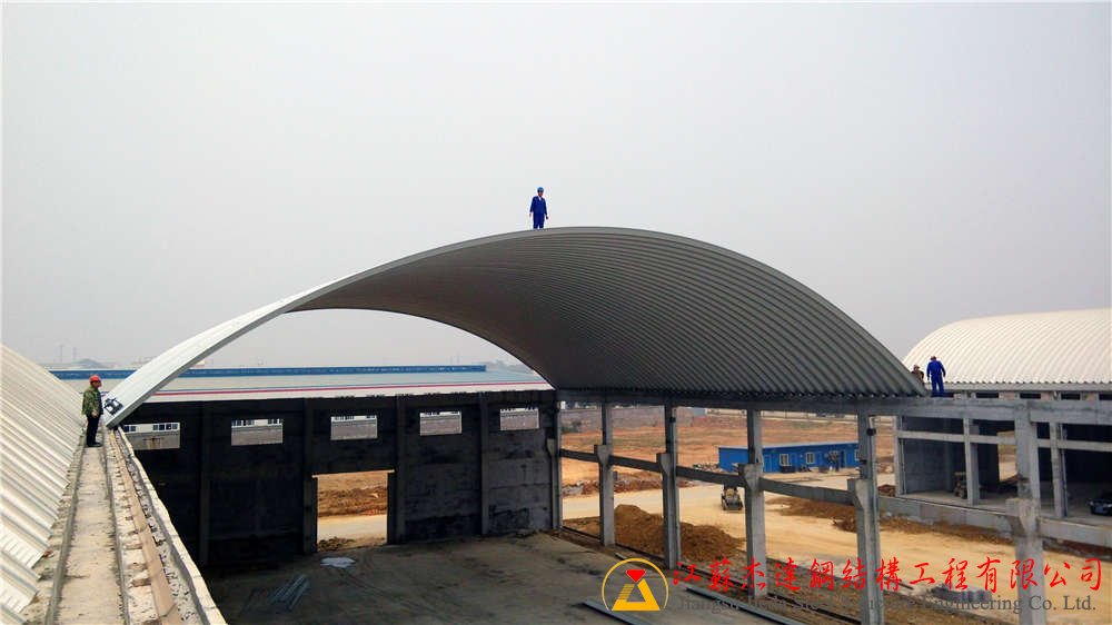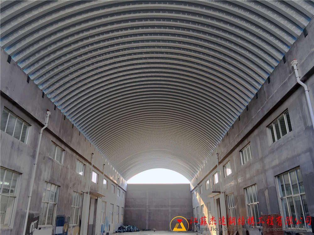 拱形屋頂在工業建筑中較為常見,尤其適用于連接兩棟磚混結構廠房之間的過道部分,既能實現空間覆蓋,也方便施工和維護。