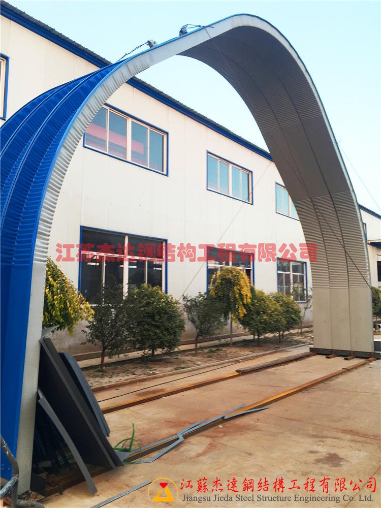 江蘇杰達鋼結構工程有限公司擁有成型設備:ZX-MCBM-120W/240W移動便捷建筑機械(一機多型)-UBM,K-span mic120/mic240 roll forming machine, 車載式大跨度無梁柱拱形屋頂板成型機組、大跨度彩鋼板無梁柱拱形屋頂無梁起拱機、車載無梁拱板成型機、無梁拱成型設備、拱板成型機、大跨度無梁拱彩鋼板機器、平板成型機、C型鋼檁條成型機組、Z型鋼檁條成型機組、琉璃瓦成型機組等建筑用設備。我們使用的產品已經通過CE認證和ISO9001-2008質量體系認證并獲得了自己的注冊商標。