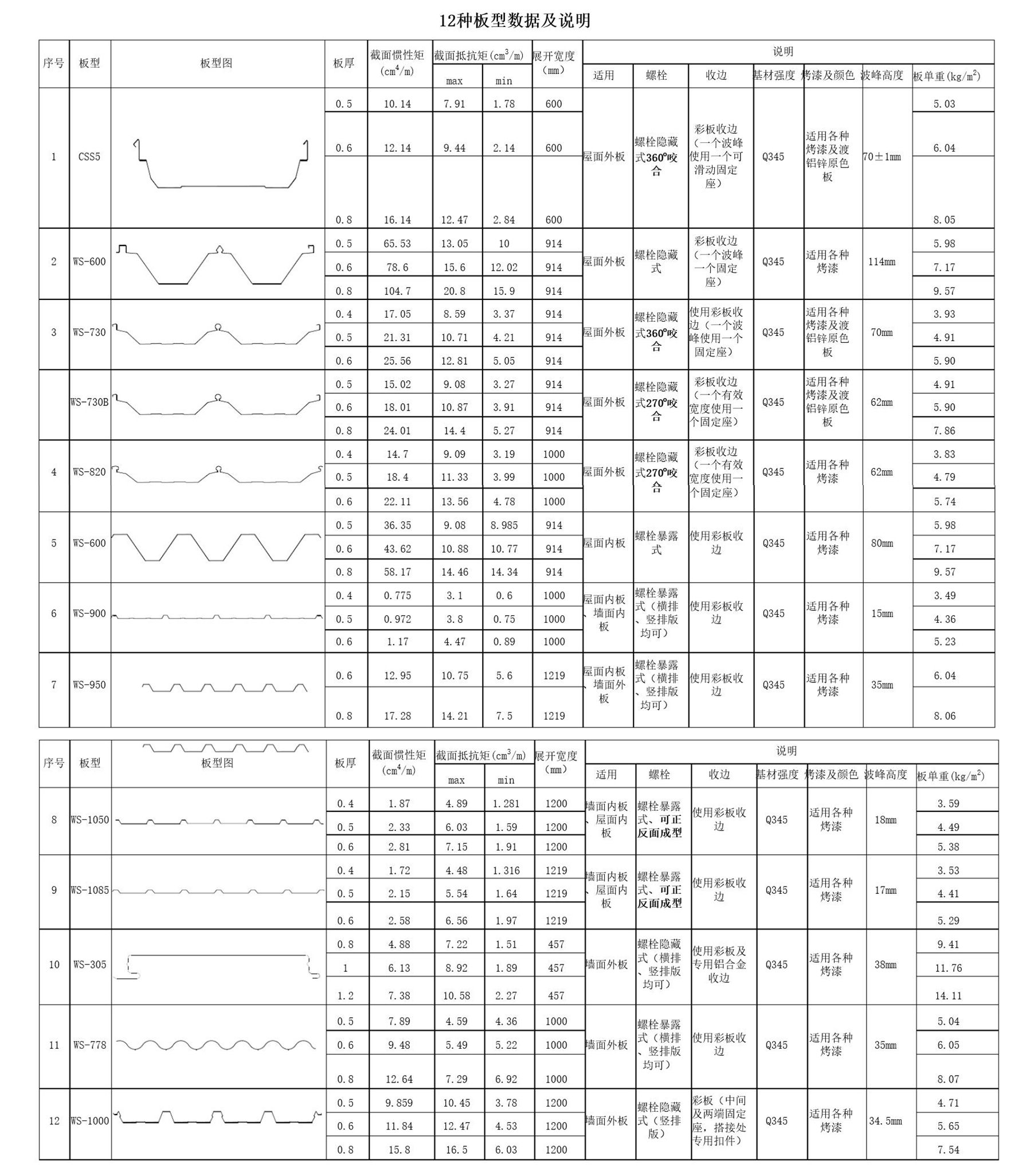 彩鋼瓦板型大全