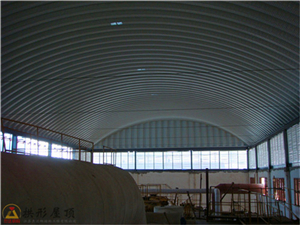 拱形屋面結構是采用國際先進的配套設備,一般0.61.5㎜厚專用914寬度彩涂成卷鋼板為原料,經過壓板、鎖邊、吊裝后成型的大跨度屋面結構。它設計施工周短、投資少、施工快,廣泛適用于混凝土攪拌站料棚、工業廠房、倉儲庫房、車庫、機庫等。