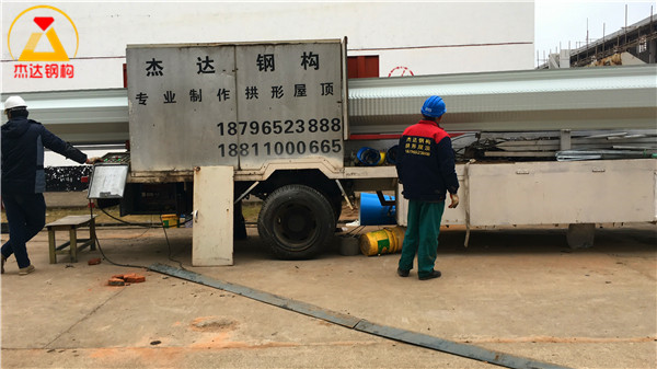 施工團(tuán)隊(duì)歷時15天完成了包括焊接托板、屋面板壓制、組裝和吊裝等關(guān)鍵環(huán)節(jié)。江蘇杰達(dá)鋼結(jié)構(gòu)工程有限公司的專業(yè)團(tuán)隊(duì)嚴(yán)格按照工藝標(biāo)準(zhǔn)進(jìn)行操作,確保了結(jié)構(gòu)的穩(wěn)固與安全。