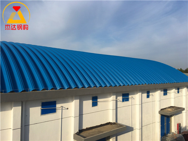 本項(xiàng)目的拱形屋頂跨度達(dá)到24米,總長度約為114米,分為兩棟建筑,一棟長度約為52米,另一棟約62米。屋頂采用了1.2毫米厚的海藍(lán)色彩涂卷板,這不僅增強(qiáng)了屋頂?shù)姆栏g性能,還提升了整體的美觀度。